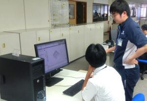→技術職の製品設計の模擬体験ならびに製品製作時プラスチックの流動性について説明します。