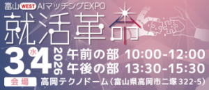 富山県西部6市の企業を中心とした「富山WEST AIマッチングEXPO-就活革命」に参加します!